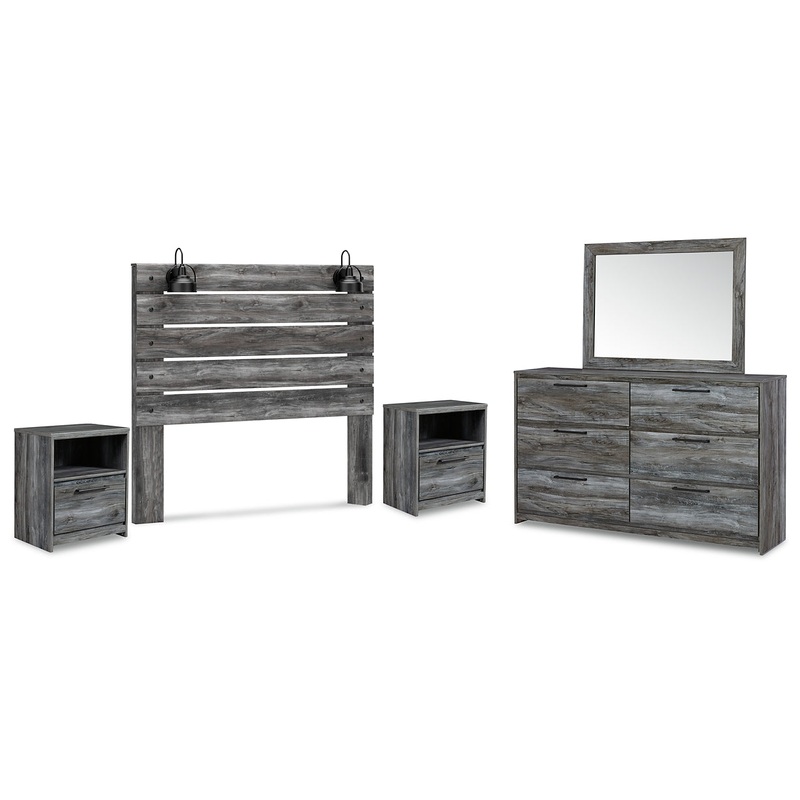 Baystorm Queen Panel Headboard with Mirrored Dresser and 2 Nightstands