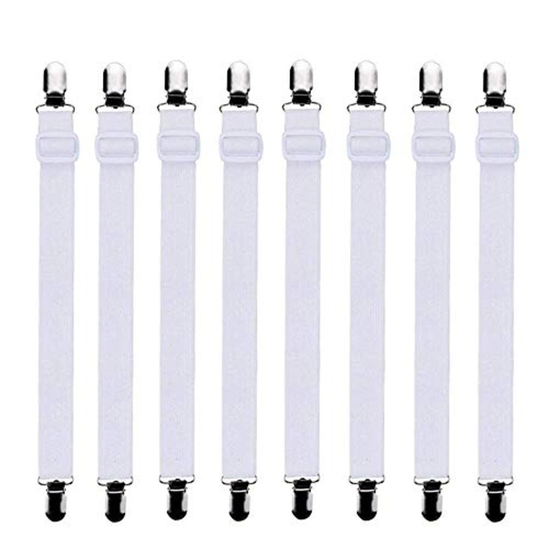 Bedecor – 8 Pezzi(30cm-120cm) Bretelle Elasticizzate Regolabili per Angoli Lenzuola, coprimaterassi, Letto o Divano, Bianco
