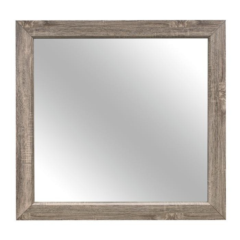 Blending the elements of contemporary design and rustic aesthetic, the Beechnut Collection is a unique addition to your bedroom. The natural finish enhancing the embossed faux-wood veneer of the mirror's frame defines the modern-rustic aesthetic.