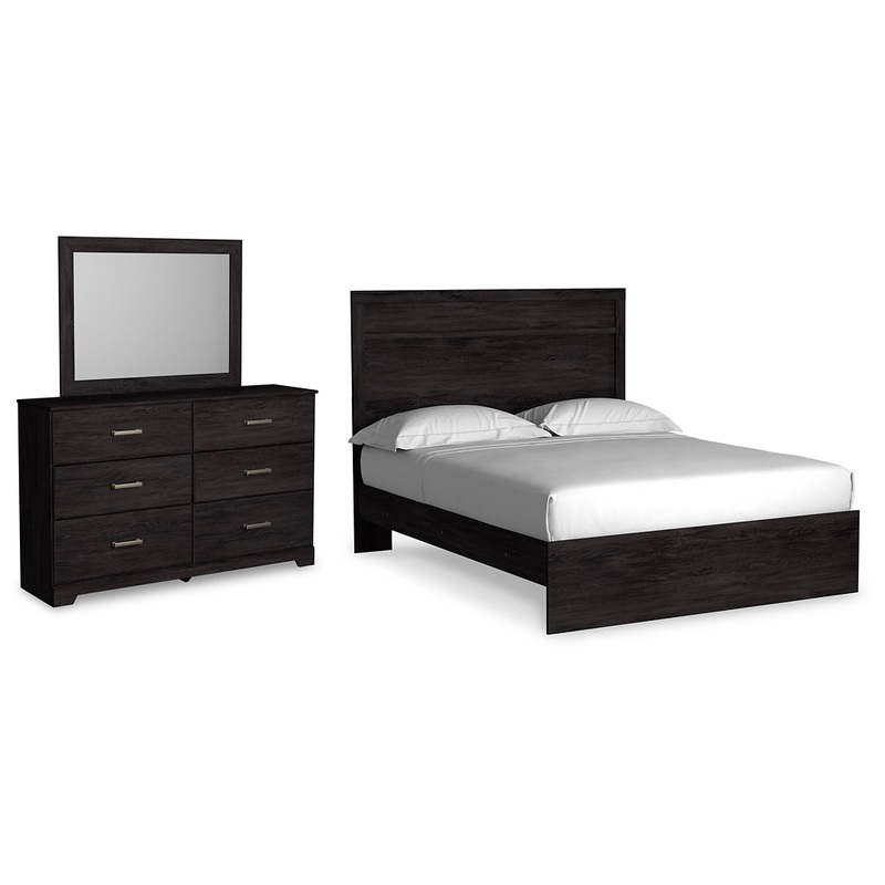 | Details | B2589B2: Includes headboard, footboard and rails, Made of engineered wood (MDF/particleboard) and decorative laminate, Dark charcoal finish over replicated oak grain with authentic touch, Foundation/box spring required, sold separately, Mattress not included, sold separately, Assembly required, Bed is compatible with an adjustable base, B2589B1: Made of engineered wood (MDF/particleboard) and decorative laminate, Dark charcoal finish over replicated oak grain with authentic touch, 6 smooth-gliding drawers, Antiqued dark pewter-tone handles, Mirror attaches to back of dresser, Safety is a top priority, clothing storage units are designed to meet the most current standard for stability, ASTM F 2057 (ASTM International), Drawers extend out to accommodate maximum access to drawer interior while maintaining safety, Assembly required, |