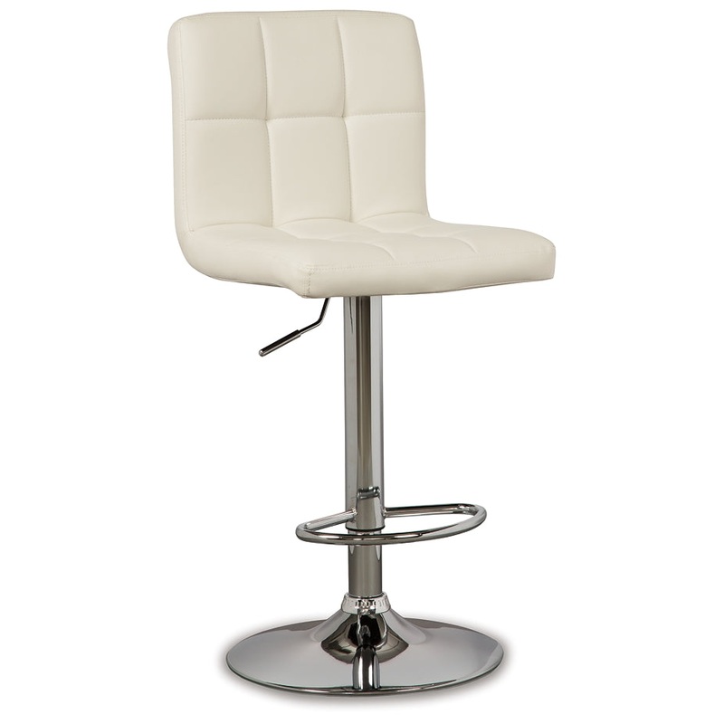 Here's a bar stool that rises to the occasion. It is sleek and modern with a chrome-tone finish. Square-tufted, bone-colored faux leather upholstery makes this bar stool pop. It easily adjusts from counter to pub height making it as versatile as it is attr
