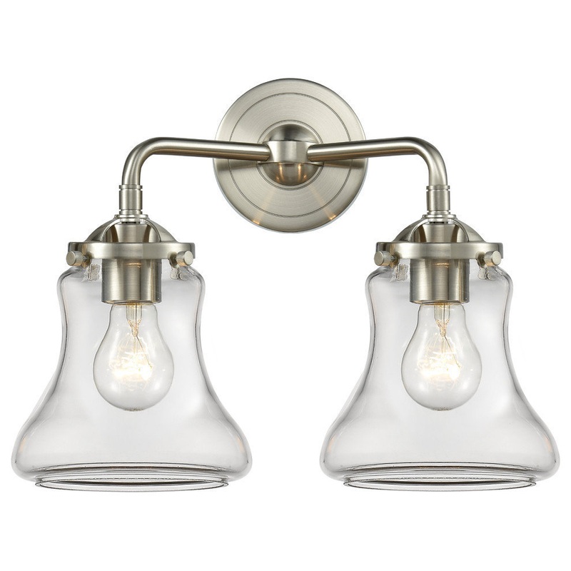 Bellmont 2-Light Bath Vanity-Light, Brushed Satin Nickel, Clear – Transitional – Bathroom Vanity Lighting – by LIGHTING JUNGLE