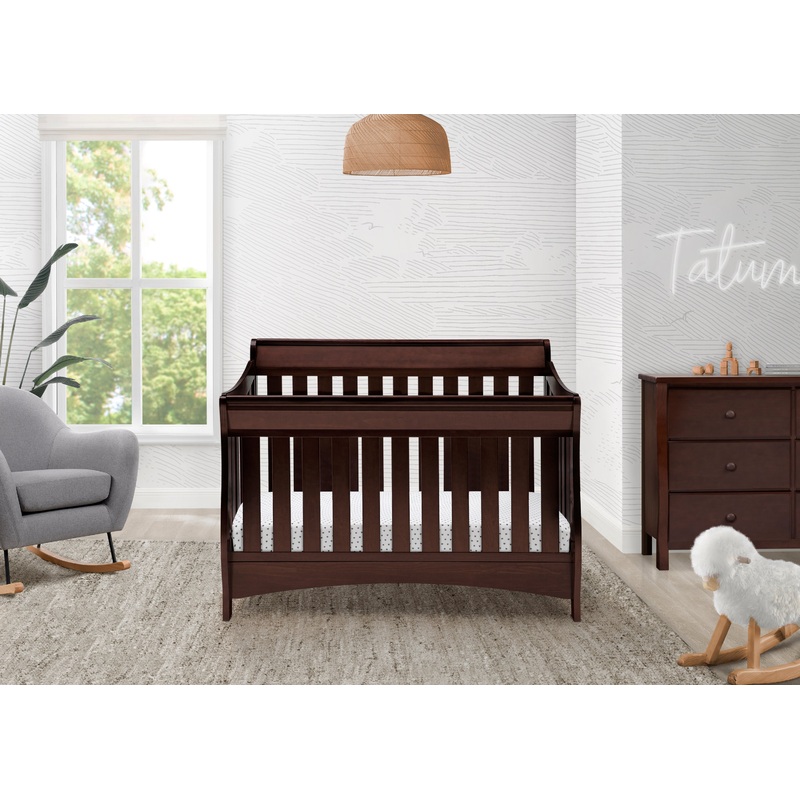 Featuring a beautiful, understated sleigh silhouette, the Bentley 'S' Series 4-in-1 Crib from Delta Children delivers functionality and outstanding value for years to come. Made of strong and sturdy wood, this multi-positional crib is built to handle anyth