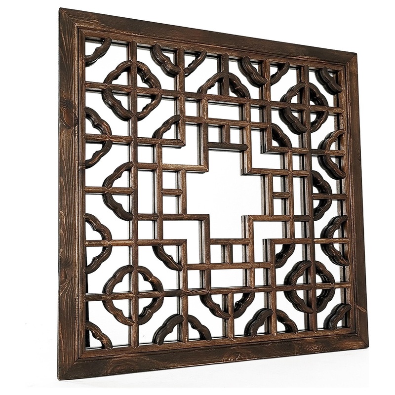 Benzara BM242218 Mirror With Square Wooden Frame/Quatrefoil Motif Front, Brown – Traditional – Wall Mirrors – by VirVentures