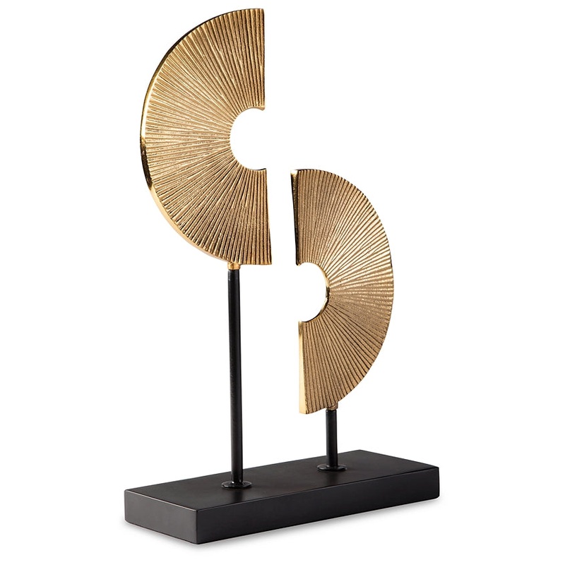 Go for the gold. Made of goldtone cast aluminum and black metal, this sculpture adds a geometric aesthetic and contemporary look to a tabletop, mantel or anywhere it’s displayed.