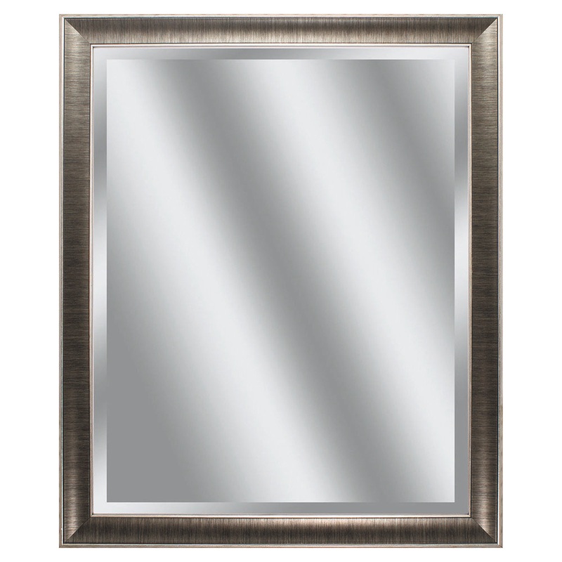 Beveled mirror finished in a gunmetal gray frame. Actual mirror size is 24X30, Overall size is 28X34 -Overall size is 34X28X1 -Single piece -Bevelled mirror -Mirror Dimensions: 24x30 -Orientation:Horizontal or Vertical -Built to OrderProduct ID177443251Man