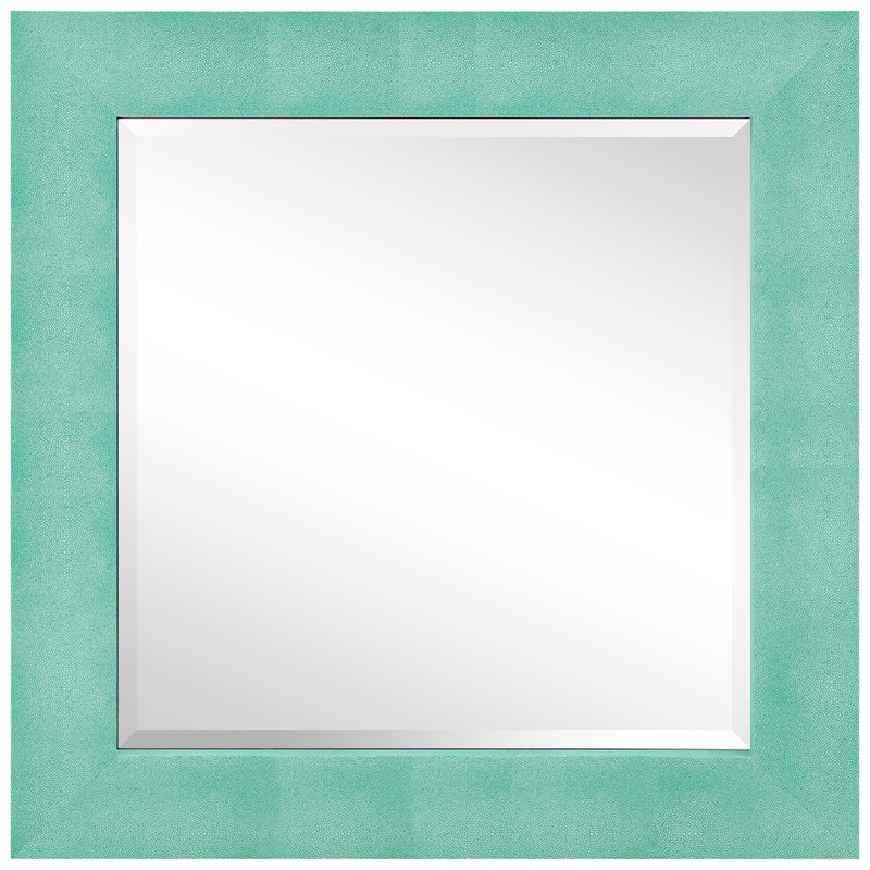Beveled Wall Mirror, Teal Metallic Shagreen Leather Framed Square Mirror 48×48 – Contemporary – Wall Mirrors – by Empire Art Direct