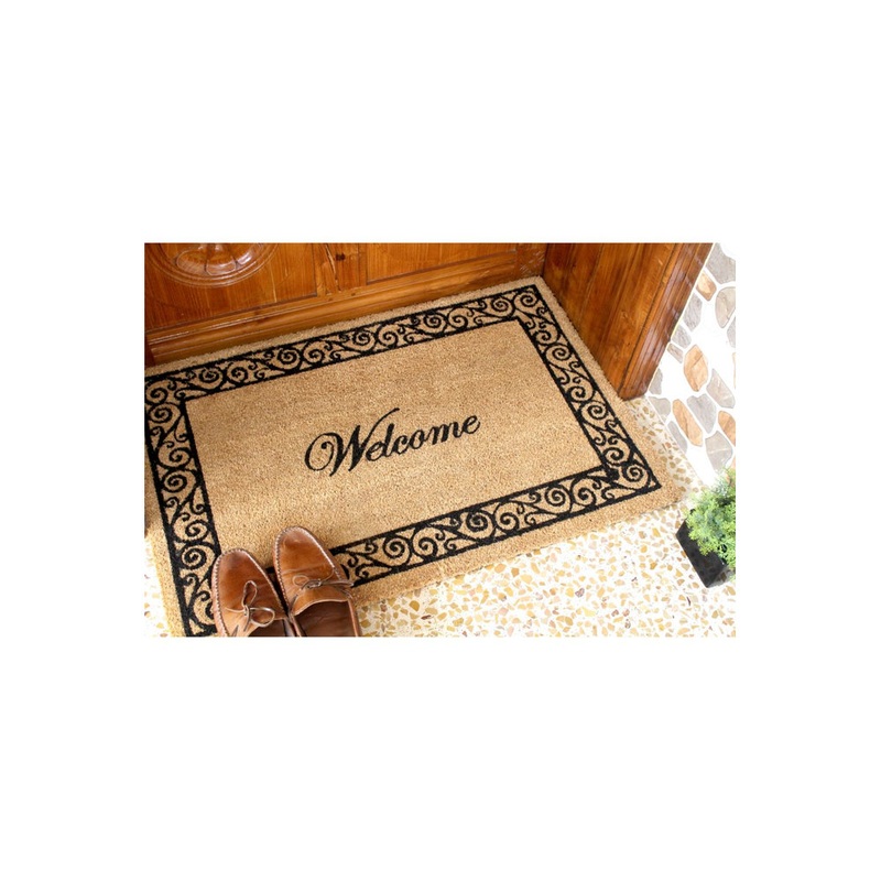 Black Machine Tufted Scroll Border Welcome Coir Doormat, 24″x36″, 24″x36″ – Contemporary – Doormats – by RugSmith