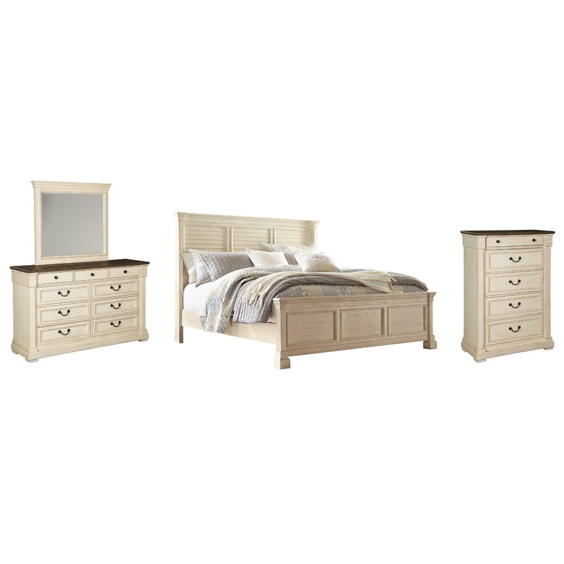 Bolanburg California King Panel Bed with Mirrored Dresser and Chest