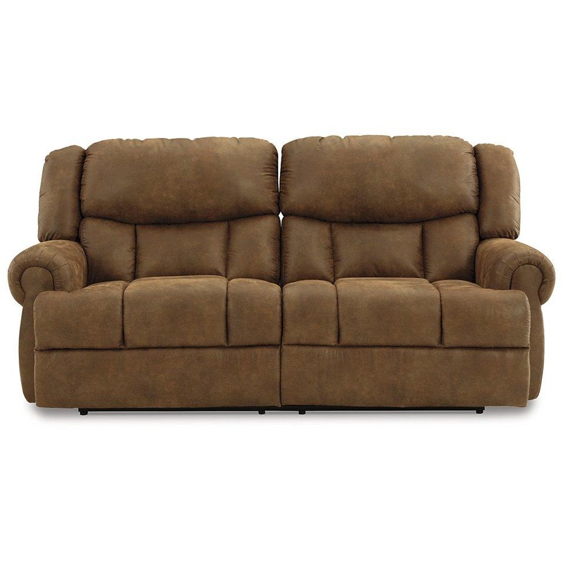 Expansive elegance. This reclining sofa makes a sizable style statement. Its large scale enhances the luxe appearance, magnifying the beauty of richly warm brown faux leather. Polishing off the piece is an effortless reclining motion, which adds a layer of