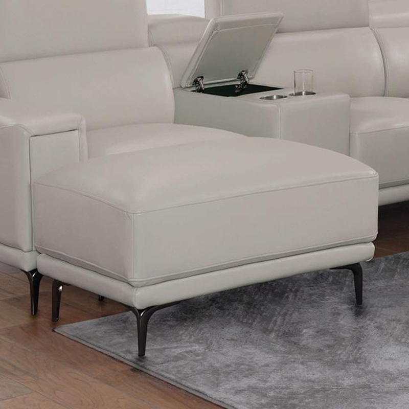Modern design gets a tech update with this fun and innovative sectional upholstered in sleek leatherette. The neutral light gray tone is versatile as it works well in any space while the smoke-plated legs are made of steel–durable and reliable.
