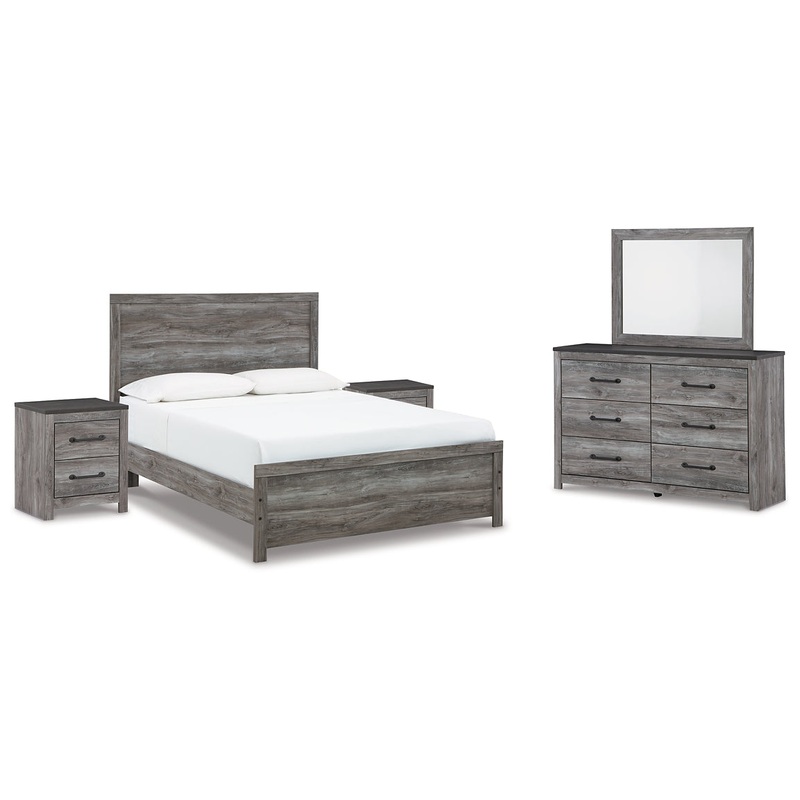Bronyan Queen Panel Bed with Mirrored Dresser and 2 Nightstands