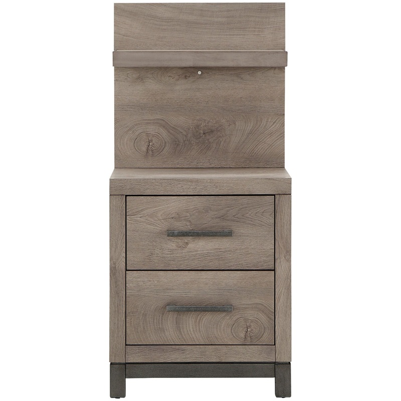 The Brooklyn Wall Panel Nightstand is sleek and contemporary. Made of melamine construction with solid wood, it boasts an updated gray finish with a replicate wood look and feel and two drawers for storage. Plus, wall panels with LED lights add a little illumination.