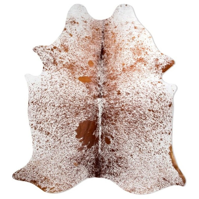 -Soft and beautiful Brazilian Natural Cowhide floor art in gorgeous salt & pepper brown and white speckles enhance the beauty of any room decor.The pattern will coordinate with other floor coverings and furniture items. Made of the finest Brazilian Cowhide tanned to perfection,this floor art item will provide years of enjoyment. Natural pattern variations will occur as no two pieces are identical. Hair on hide cleaning Instructions: For common spills or soil,soak with a paper towel or clean cloth immediately.Wipe with a clean,absorbent cloth or sponge.The cloth should be damp,not wet.You can use a mild non-detergent soap solution or cleaner such as Ivory Soap.Do not use Ivory liquid because it has a detergent base.Do not wash in washing machine or dry clean.Always allow the hide to air dry.Never dry with a hair dryer.Cleaning chemicals should NOT be used.If necessary,we suggest using a vacuum’s soft brush attachment for dust and dirt particles.