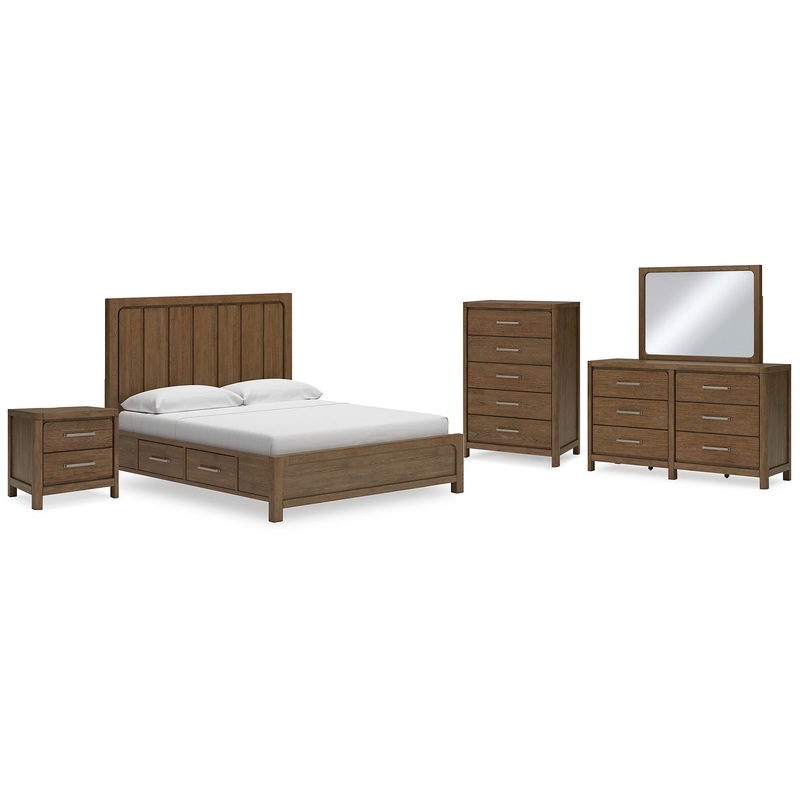 Cabalynn California King Panel Bed with Storage with Mirrored Dresser, Chest and Nightstand