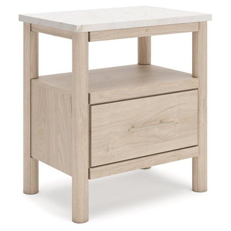 Transform your bedroom with this nightstand. With its clean lines and replicated marble top, it exudes a minimal and sophisticated boho style. Built-in lighting and charging capabilities add simplicity and ease to your everyday tasks. Tailor your space and
