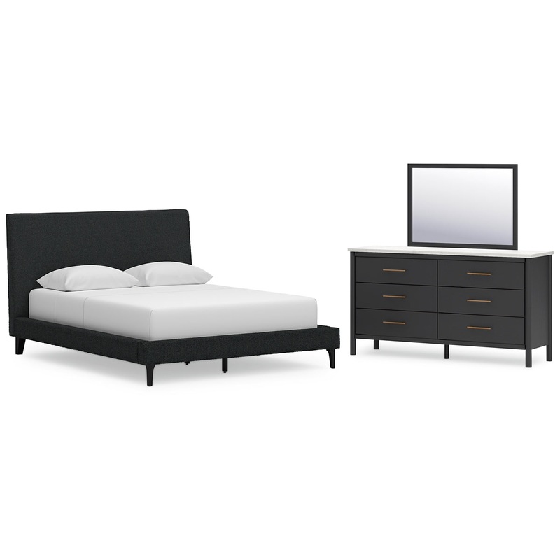 Cadmori Queen Upholstered Bed with Mirrored Dresser