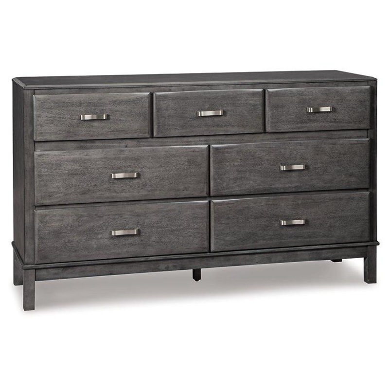 Contemporary style is shaping up beautifully. Designer elements are evident from every angle in this dresser. Quality crafted with dovetail construction, the dressers contoured drawers offer ample storage options. Sporting a distinctive weathered gray finish, its the epitome of casual elegance.