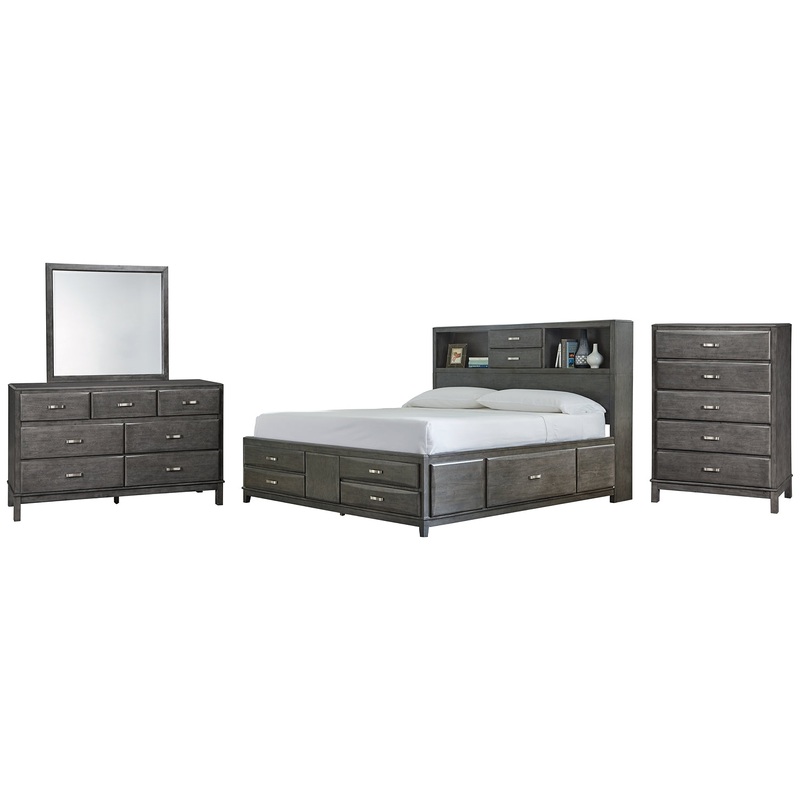 Caitbrook Storage Bed With 8 Storage Drawers With Mirrored Dresser And Chest Caitbrook Queen Storage Bed with 8 Storage Drawers with Mirrored Dresser and Chest
