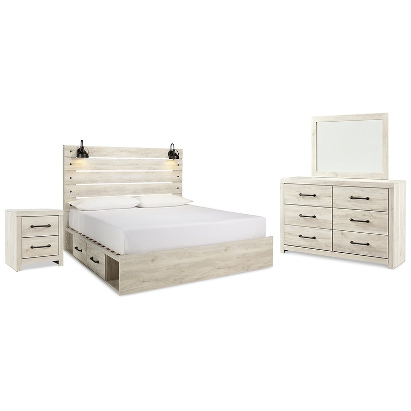 Cambeck King Panel Bed with 2 Storage Drawers with Mirrored Dresser and Nightstand