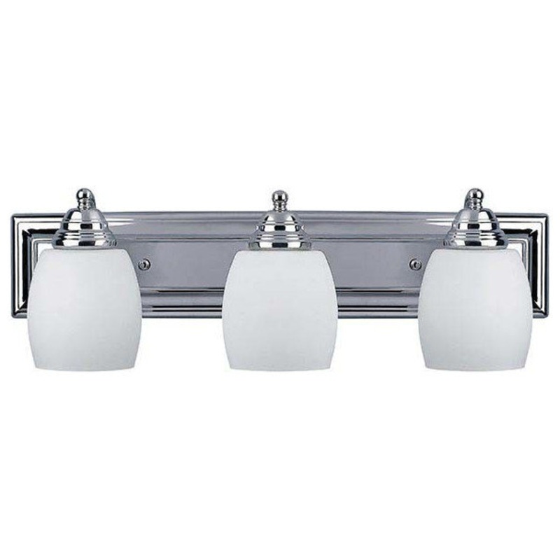 Features Crafted from steel Includes opal glass shade Requires (3) 100 watt Medium (E26) bulbs Capable of being dimmed when used with incandescent bulbs CSA rated for damp locations Covered under manufacturer 1 year limited warranty Dimensions Height: 7-1/4″ Width: 24″ Depth: 7-1/4″ Extension: 7-1/4″ Product Weight: 5.5 lbs Shade Height: 5″ Shade Diameter: 4-5/8″ Backplate Height: 4-5/8″ Backplate Width: 24″ Electrical Specifications Bulb Shape: A19 Bulb Base: Medium (E26) Number of Bulbs: 3 Bulbs Included: No Watts Per Bulb: 100 watts Wattage: 300 watts Voltage: 120 volts