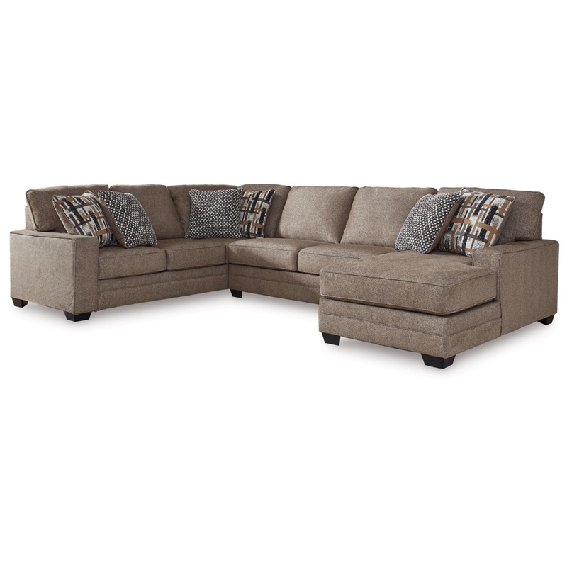 Classic, contemporary and cozy. With this sectional with chaise, relaxing in style is made easy. It takes a warm and inviting approach to versatile color, incorporating posh character into your space with menswear-inspired upholstery. Graphic accent pillows bring fresh flair to the look. Living room lounging has never been so comfortably chic.