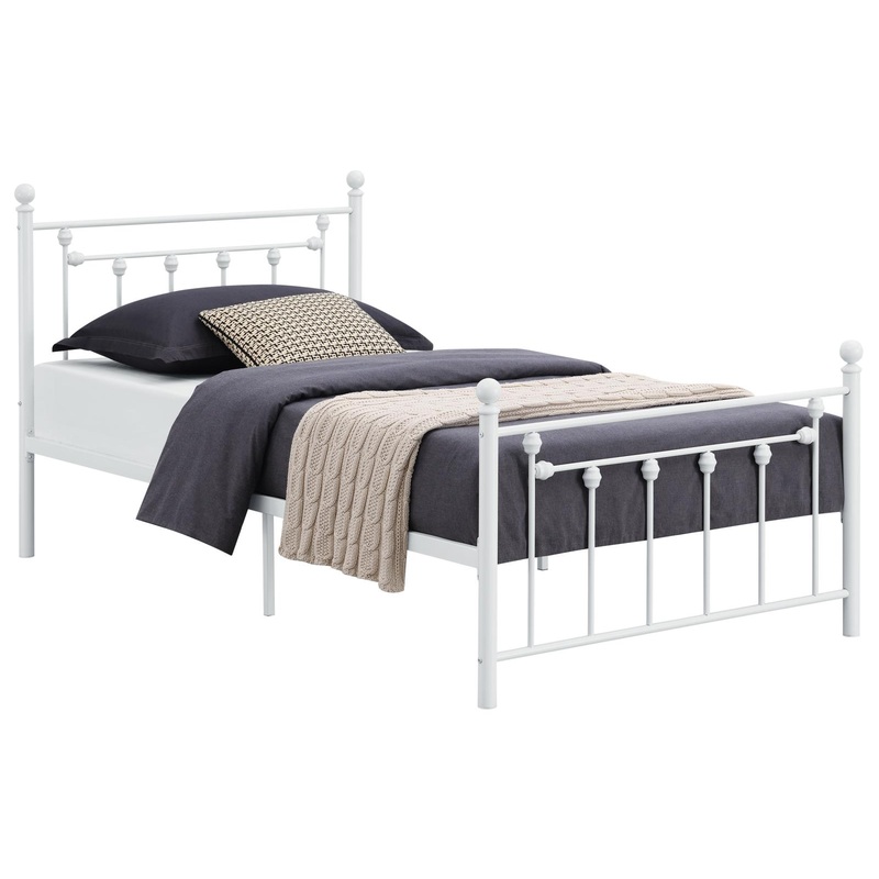 Canon Full Metal Slatted Headboard Platform Bed – White
