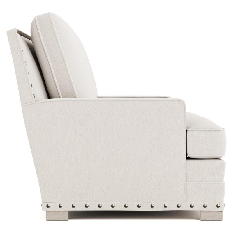 With a striking linear design, the Cantor loveseat features clean, contemporary lines accented by welting. Spring down cushions and fiber back pillows form a comfortable, supportive seat. Large nailhead trim and block feet add to the refined, modern style.