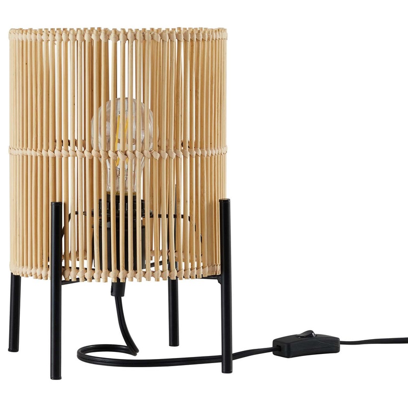 Refresh the ambient lighting in your bedroom, living room, or home office with the Casen Bamboo Table Lamp. This contemporary side table lamp displays a cylindrical open-weave bamboo lampshade, introducing an earthy and artful aesthetic into modern, bohemian, or eclectic settings. Harmonizing in lines, shape, and stature, this living room lamp rises elegantly on a four-legged powder-coated black iron base, mirroring the stick bamboo weave. Casen features a black power cord with a convenient on/off switch. This dimmable coffee table lamp requires 1 E26 60W max bulb or LED equivalent (not included). Compatible with dimmer switches (not included).