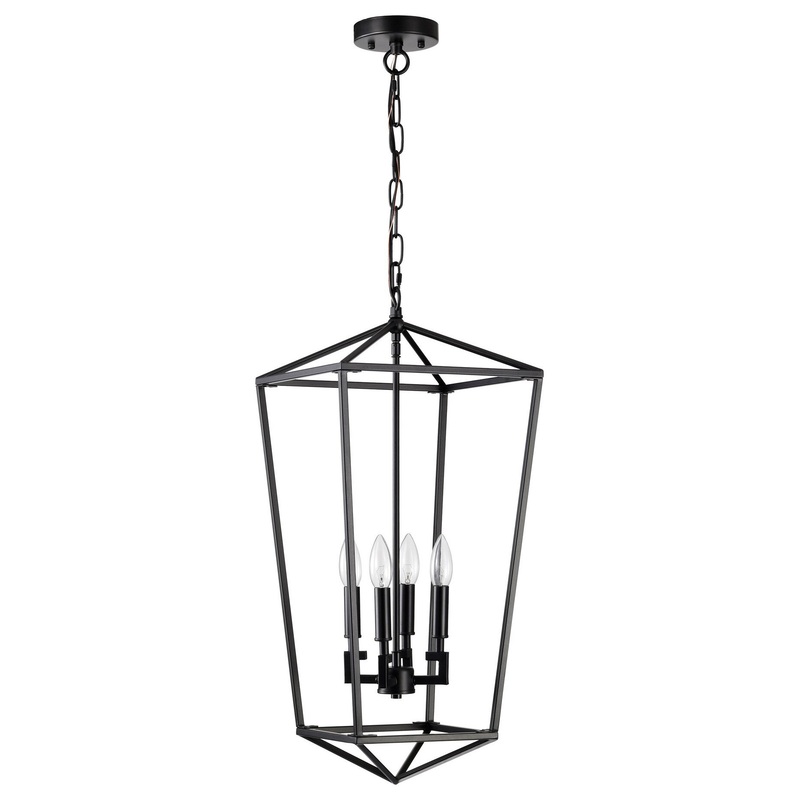Illuminate your space with the chic allure of the Lantern-Style Chandelier. This exquisite fixture boasts a sleek black finish, highlighting its captivating cage design. With four lights, it radiates a warm and inviting ambiance, adding a touch of modern elegance to any room. The lantern style infuses your space with timeless charm while creating a focal point that effortlessly enhances your interior decor. Bring sophistication to your home with this eye-catching chandelier, a perfect blend of style and functionality.