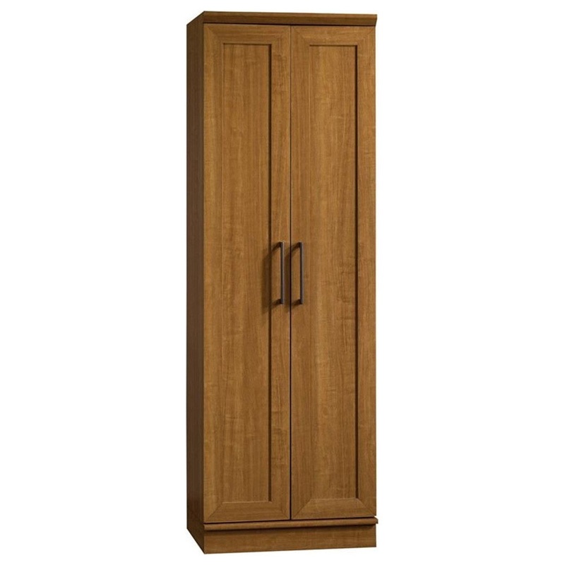 Contain your clutter and chaos with this storage cabinet from the collection. Behind the framed panel doors of this narrow storage cabinet are four adjustable shelves to store anything from pantry food to fluffy bathroom towels. The adjustable shelves allow for various customizable options so there is always room for your tall cereal boxes, stacks of linens, and more. This 2-door storage cabinet features adjustable base levelers to ensure your unit is level, even if the floors are not. An enclosed back panel with cord access pass-throughs allows for easy charging of phones, tablets, computers, and more. Finished in Sienna Oak, this wood storage cabinet adds style and functionally to any room in your home. We hope you like what you see. Catania designers travel the world and bring back the best and latest in style, finish, and color trends. This inspiring world travel is evident in the cutting edge and innovative furniture solutions we offer to you!