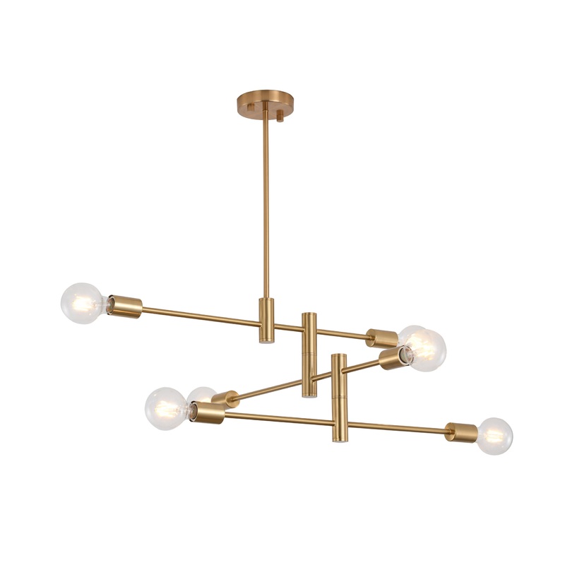 This chandelier is a stylish and traditional lighting fixture that adds a touch of sophistication to any room. The brushed bronze finish provides a warm and rich appearance, while the stick arm design creates a sense of simplicity and elegance. The fixture is designed to accommodate 6xE26 bulbs (Bulbs Not Included), each with a 60W output, which provides ample illumination for a medium-sized space. The dimensions of the fixture are 35 inches in diameter and 11.2 inches high, making it a great option for installing as a ceiling fixture or pendant light. The classic design of this fixture makes it suitable for bedroom, living room, dinning room, hallway, or entryway.