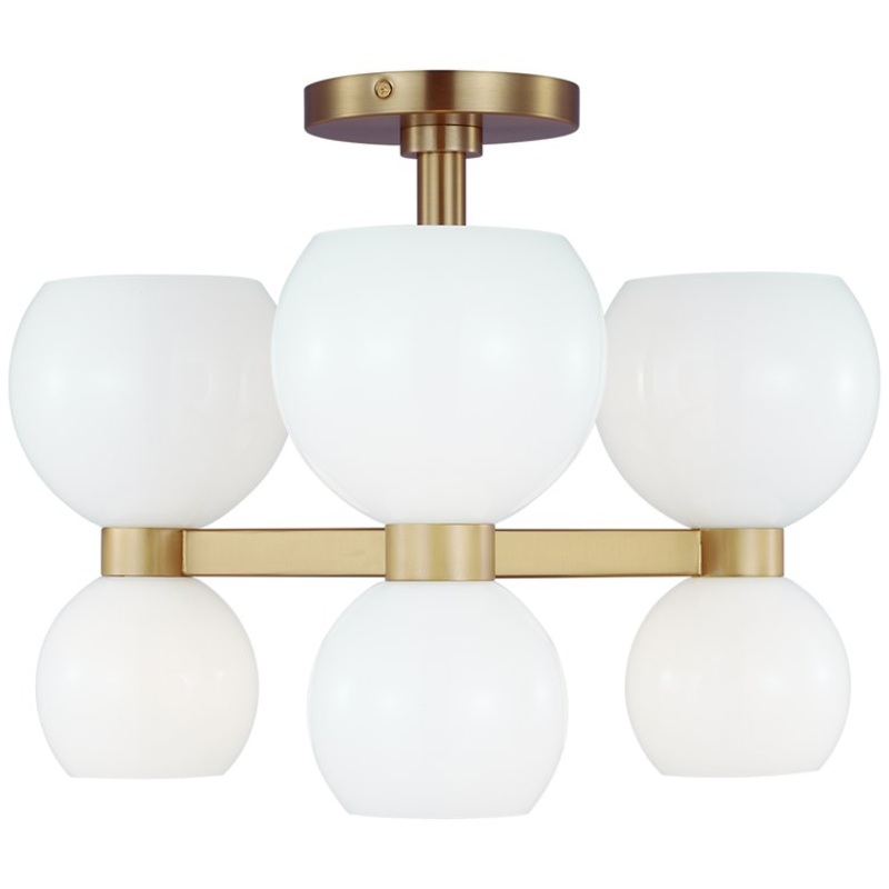 Ceiling Light Londyn Semi-Flushmount 6 Lamp Burnished Brass Milk White