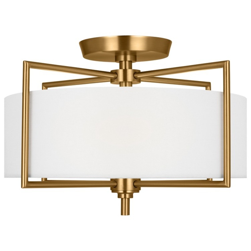 Ceiling Light Perno Semi-Flushmount Medium 2 Lamp Burnished Brass White Linen