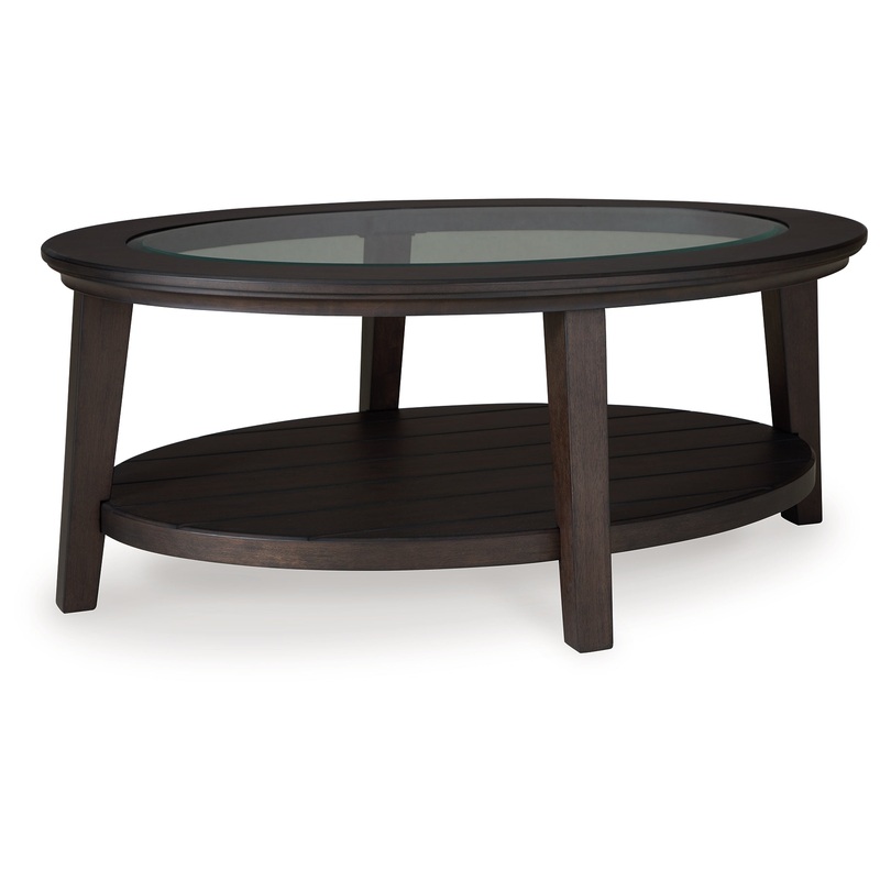 If you’re looking for an accent piece with traditional elements that also fit in modern farmhouse settings, you’ve found it. A rich finish bathes the canted legs and thick lower shelf of this coffee table, adding a lovely dimension under the glass inset tabletop. Place it in front of your sofa and enjoy the timeless casual styling it brings to your home.