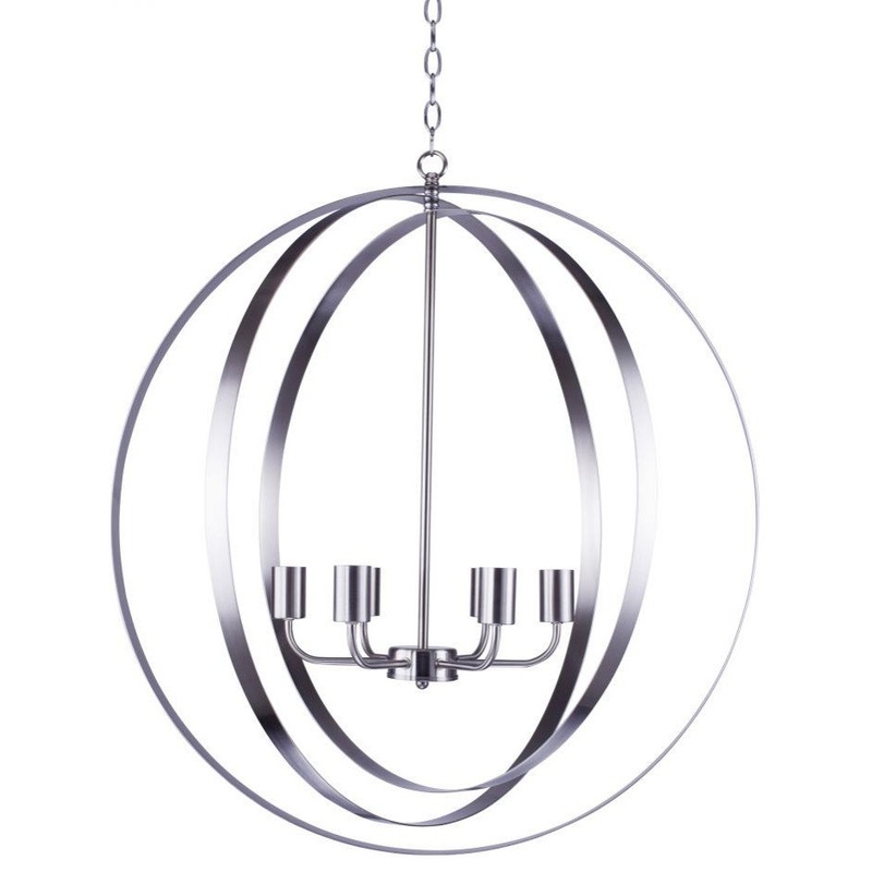 This Steel Orb Chandelier from the Amanda family has a Satin Steel finish, featuring candelabra style bulbs, it will make a handsome addition to your home.