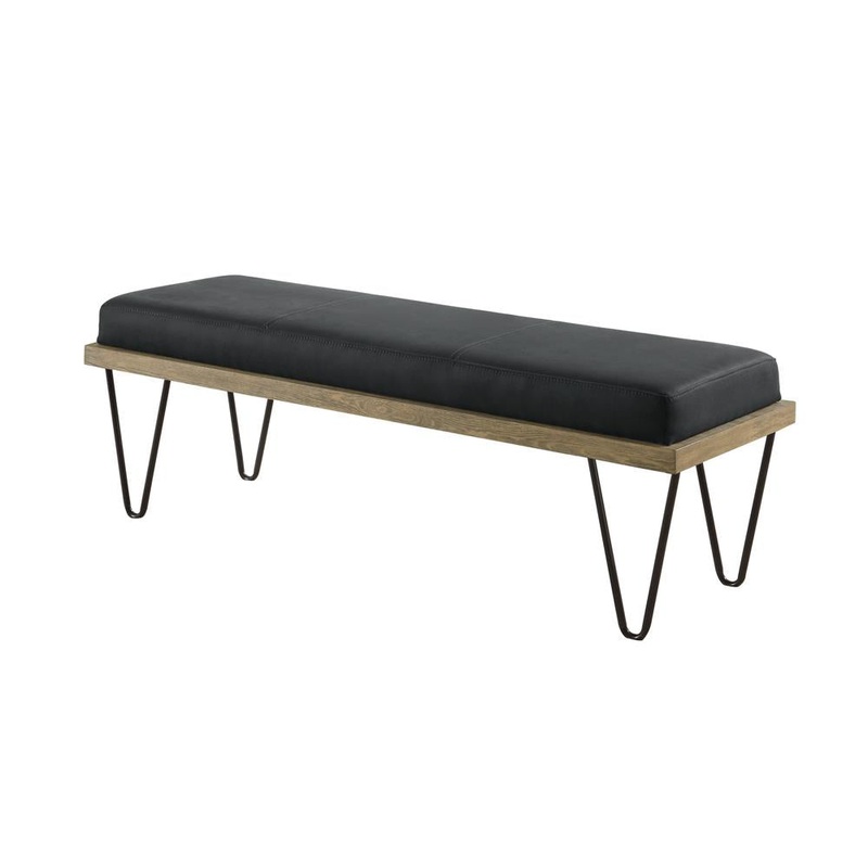 Accessorize a casual space in charming style. This bench provides utility as a seating venue as it snazzes up the carefree elegance of a transitional room or entryway. Retro-look hairpin legs support a dual-layer seat. Dark blue denim upholstery creates a dynamic look that’s versatile and stylish. This eye-catching bench is an ideal complement to a fresh, invigorating mid-century scheme.