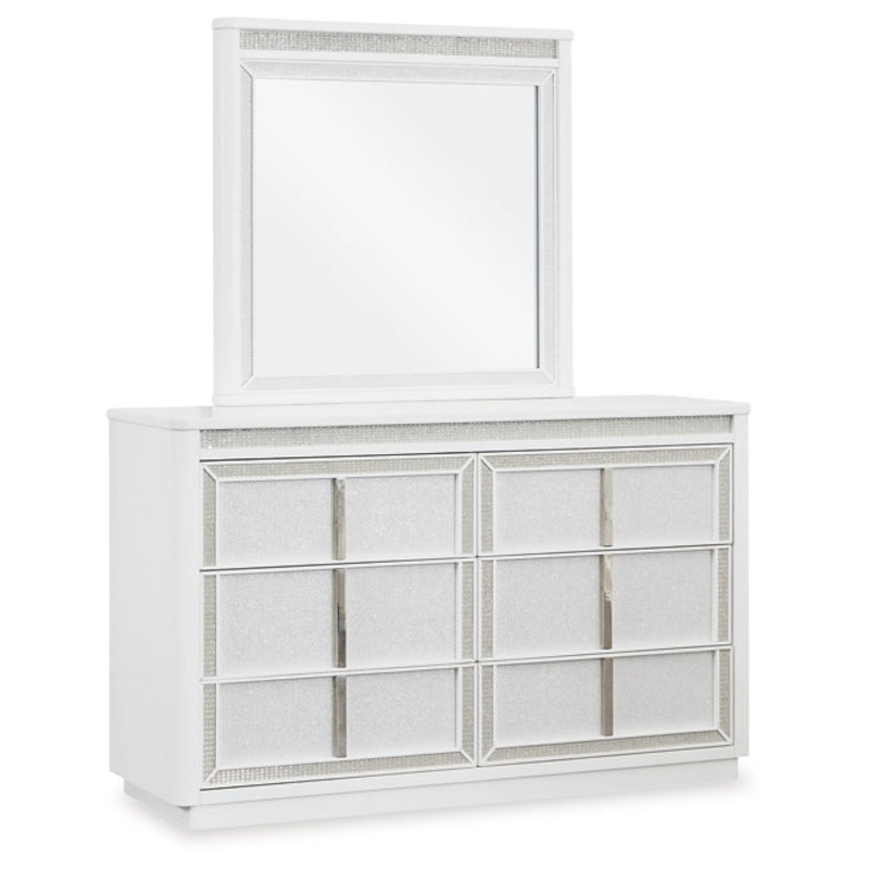 Transform your bedroom with the Chalanna dresser and mirror. Its modern design and glamorous details create a sophisticated retreat. The built-in LED lighting and rhinestone-framed drawers add style and practical storage. Let your sanctuary shineand never let anyone dull your sparkle.