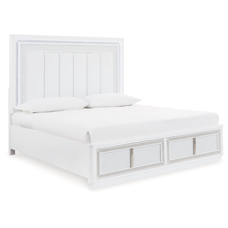 Transform your bedroom with this upholstered storage bed. Its LED lighting, rhinestone framing and faux leather panels exude modern glamour. And the convenient storage footboard offers a practical solution for organizing and accessing belongings. Let your sanctuary shineand never let anyone dull your sparkle.
