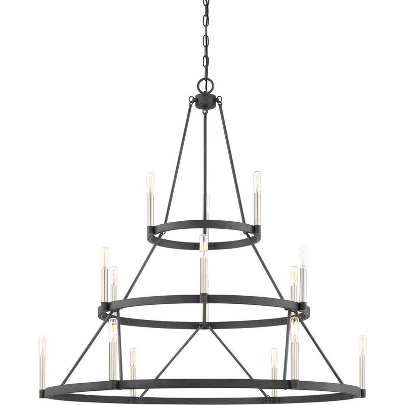 Chandelier 15 Light Steel . The Clair Wood Place features minimal style with maximum impact. The rich mottled black finish showcases the collection unique suspension while candle sleeves in antique nickel provide a pop of contrast.