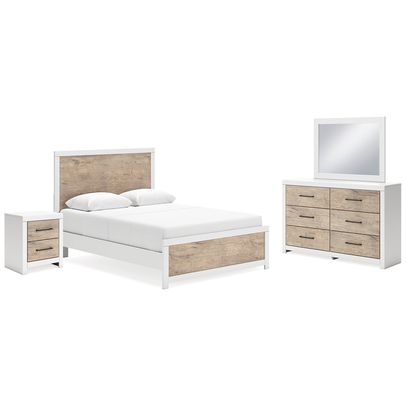 Relaxed yet striking, this bedroom package brings casual beauty and function to your dream destination. A delightful two-tone treatment blends a fresh, replicated oak grain with a matte white finish that's easy to love. The sets simplicity lends a contempo
