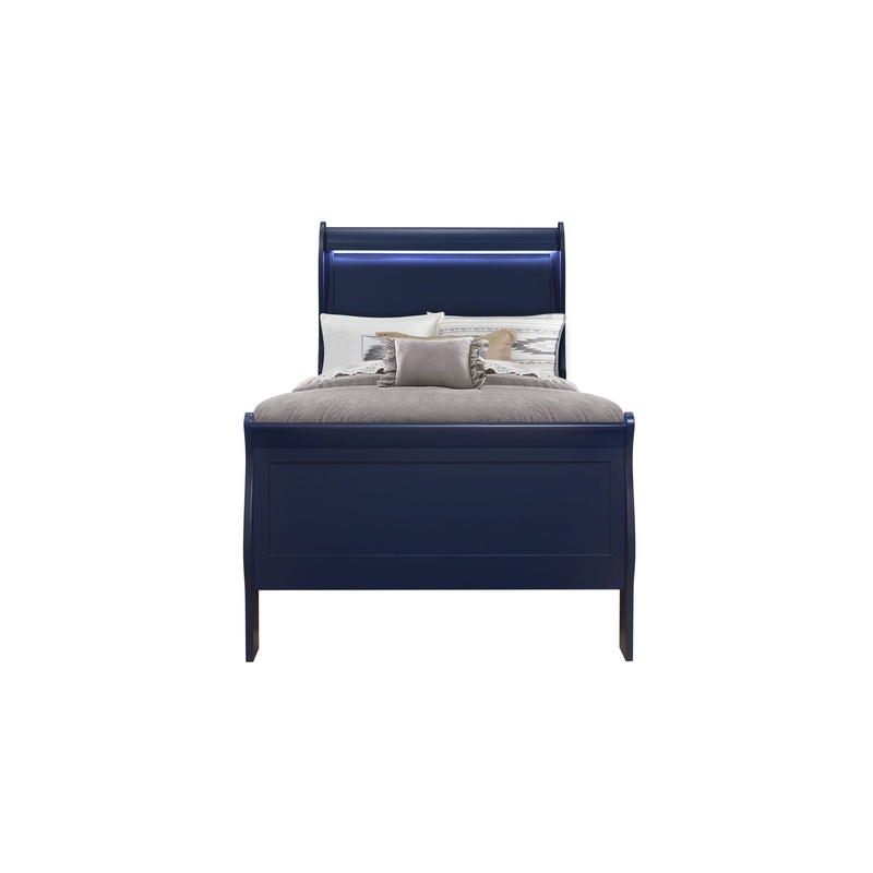 Charlie – Twin Bed Headboard With LED & Footboard – Blue
