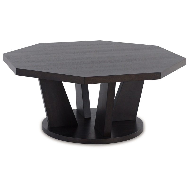 For the ultimate in casual contemporary styling, accent your sofa or loveseat with this chic coffee table. Designed with an octagonal top and trapezoid-shaped legs, its geometric elements create a bold, eye-catching look.