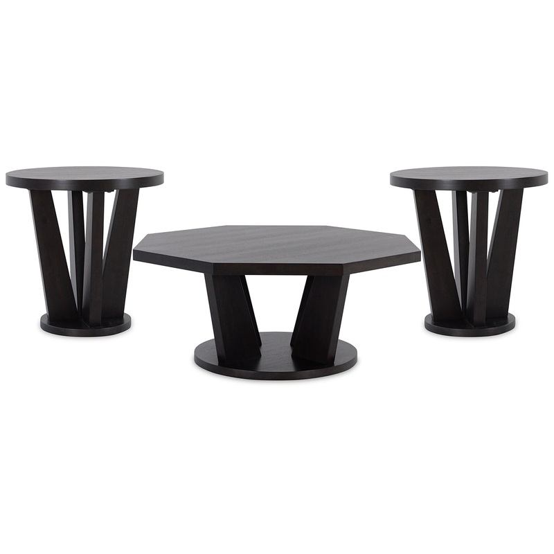 For the ultimate in casual contemporary styling, accent your seating area with this chic occasional table package. Each piece is designed with geometric elements (including an octagonal top and trapezoid-shaped legs) to create a bold, eye-catching look.