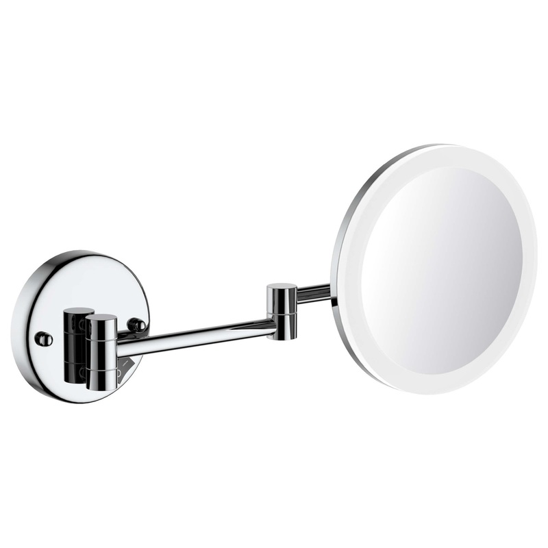 The Circular LED Magnifying Makeup / Shaving Mirror features an extendable arm and 4 rotating joints to adjust its position and angle to suit your makeup or shaving needs; a round mirror with a 5 x magnification for a close-up view. It is made of solid bra