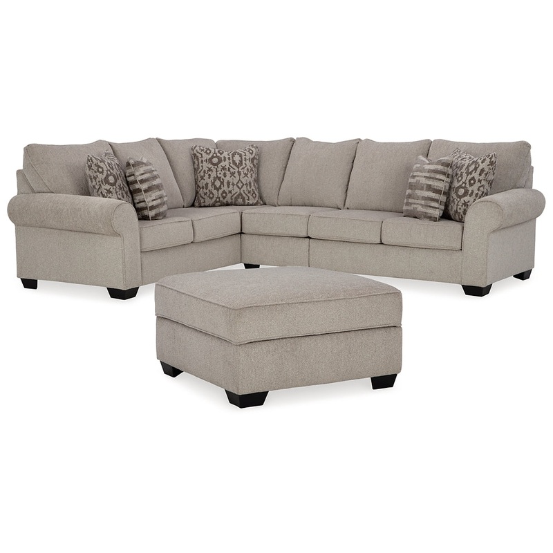 Whether your vision is traditional or cozy farmhouse, this sectional and ottoman package has the corner on style. Merging ultimate comfort with striking good looks, this chic set includes coordinating accent pillows for that much more feel-good allure.