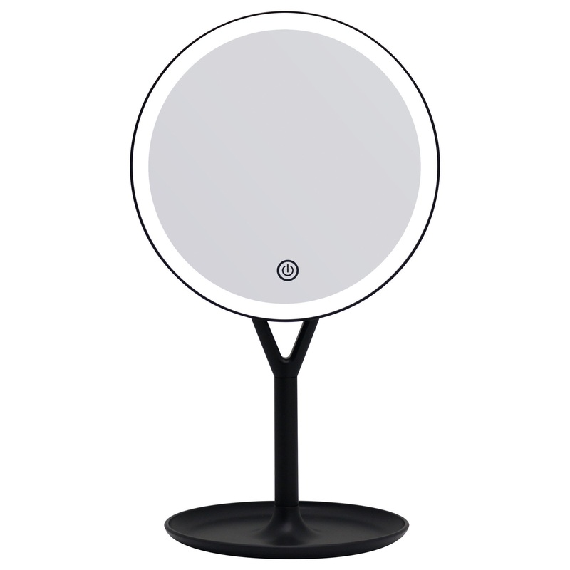 Impressions Vanity The Clarity makeup mirror is clean and sleek in appearance with a jewelry holder as a base and endless functions. This high definition distortion free mirror is outlined by a bright ultra bright LED light strip. Press and hold the touch