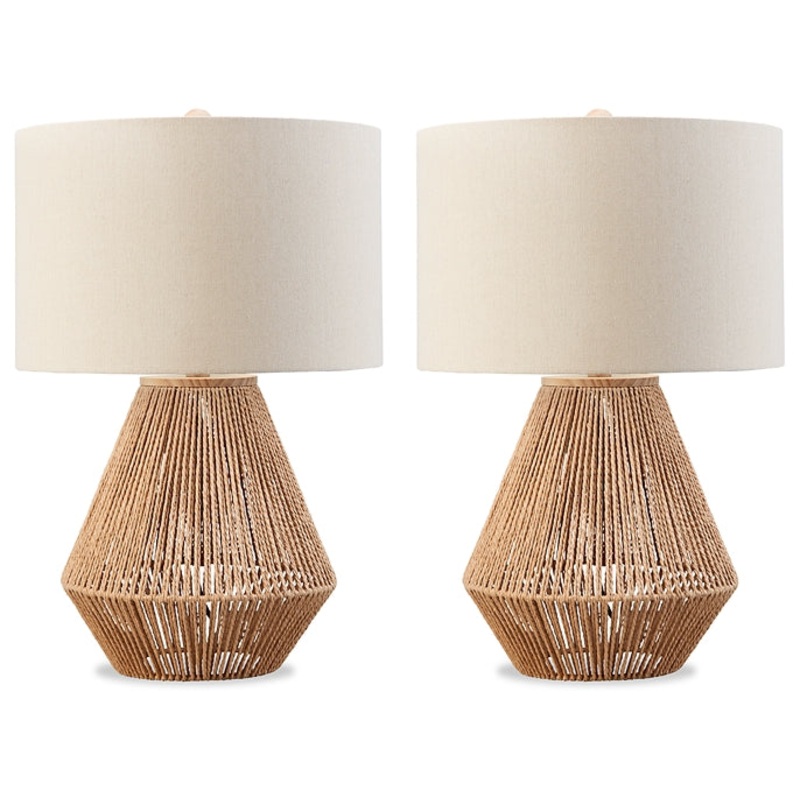 A coastal aura runs through the roped look of this table lamp set. The light and airy fixtures, with robust bodies, have a bohemian sense of style to create warmth and brightness in your beach house bedroom or eclectic living room.
