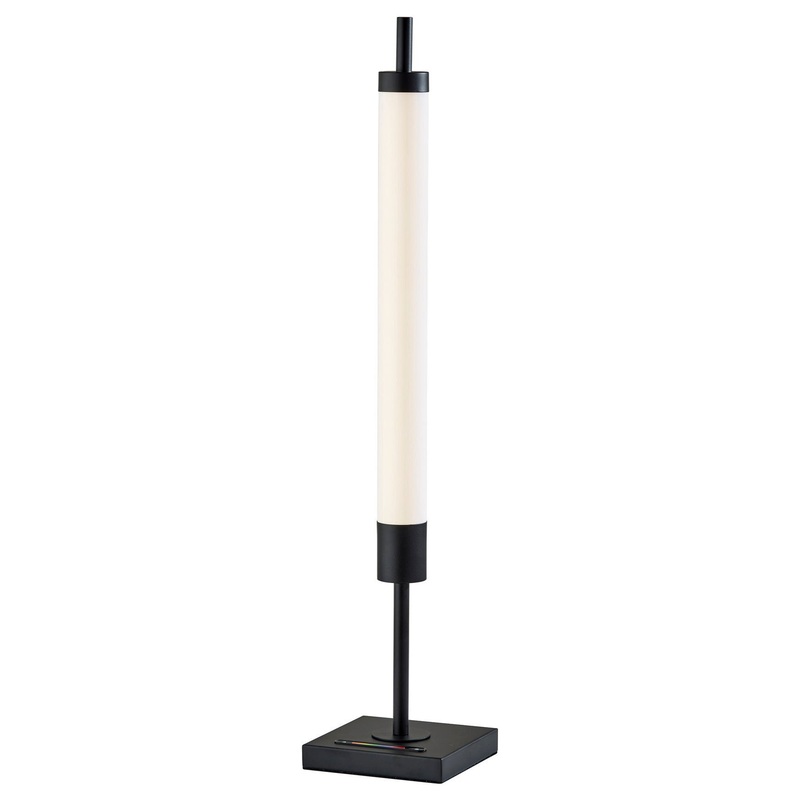 For a modern, minimalist design that adds vibrant ambient lighting, look no further than the Collin LED color changing table lamp. The lamp provides a minimalist silhouette, rising from a 6" square black metal base to a 17" tall slender cylindrical shade m