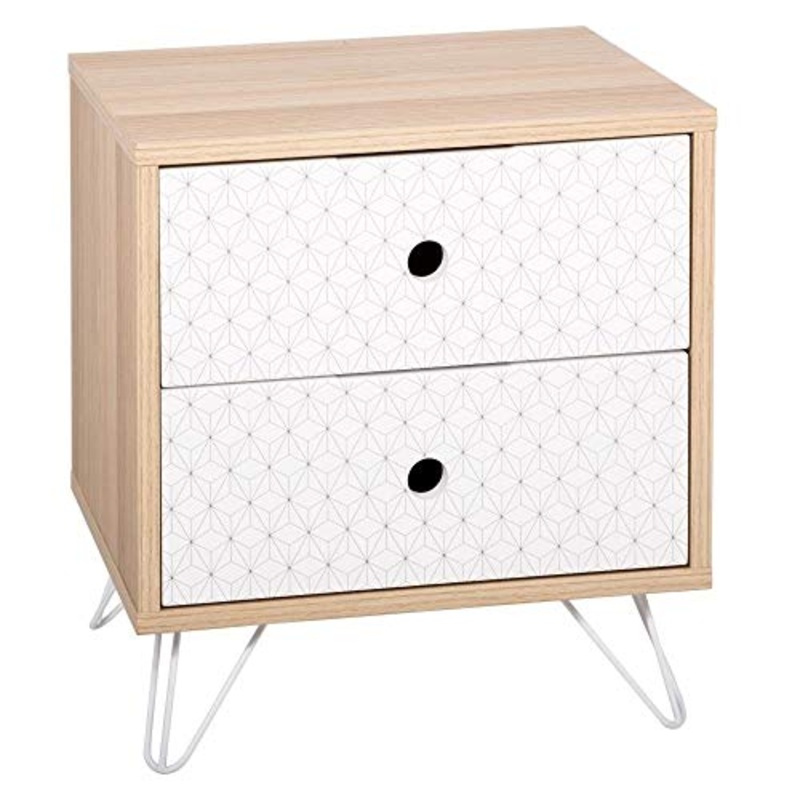 Dettagli: Bellissimo comodino con 2 cassetti realizzato in legno e in stile nordico grometric, l'ultima tendenza in termini di arredamento si riferisce Inoltre, le gambe in metallo rendono questo tavolino un mobile durevole e per tutta la vita. Non perdert